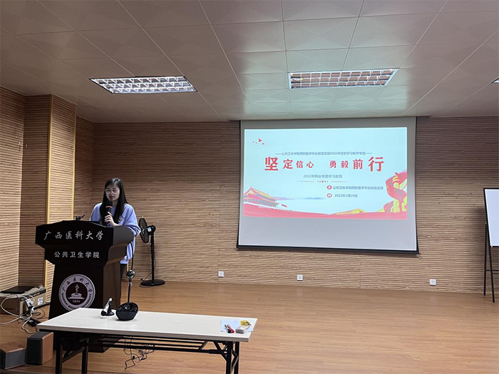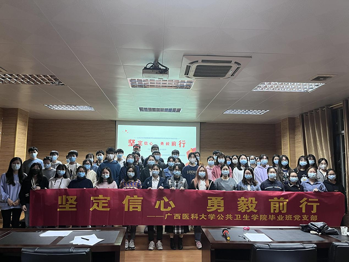 当前位置:学生工作为深入贯彻学习2022年全国“两会”精神,增强党员同志们的使命感和责任感。2022年3月29日晚,百家乐论坛 预防医学毕业班党支部开展“坚定信心,勇毅前行”主题党日活动。预防医学毕业班党支部正式成员、预备党员、积极分子共55名同志参加,活动由支部书记郑冬婷主持。