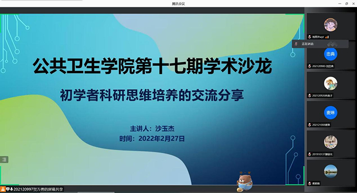 第十七期研究生学术沙龙在腾讯会议如期举行。本期活动的主讲嘉宾为国家奖学金获得者2019级劳动卫生与环境卫生学硕士研究生沙玉杰同学,讲座围绕 “初学者科研思维的培养”主题展开。百家乐论坛