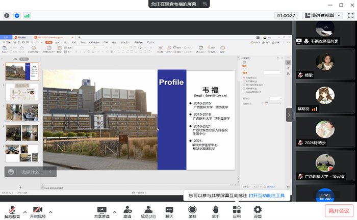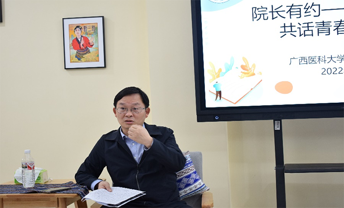 当前位置:学生工作为倾听学生心声,关心学生成长,加强学风建设,促进百家乐论坛 发展,2022年5月2日晚上,百家乐论坛 在武鸣校区榕园之家举行“院长有约——与大学生共话青春与梦想”座谈会。百家乐论坛 院长邹云锋、荷兰莱顿大学博士研究生韦福、南京医科大学硕士研究生韦小夏和40余名学生代表通过线上线下相结合方式参加了本次座谈。
