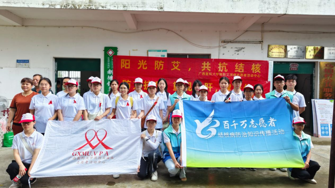 当前位置:学生工作为全面贯彻“坚持以人民健康为中心,深入实施健康中国行动”理念,提高广大人民群众对艾滋病、结核病的了解程度与防范意识,7月17日-7月21日,我校百家乐论坛 预防艾滋病志愿者活动中心(简称VPA)联合贵港市疾病预防控制中心,在广西医学教育与科学研究基金会的资助下,由指导老师蒋俊俊带领23名志愿者前往贵港市开展“爱与‘艾’,连着红丝带”实践教育公益活动。