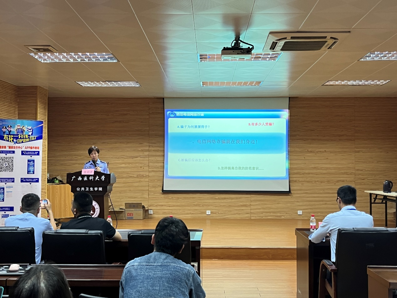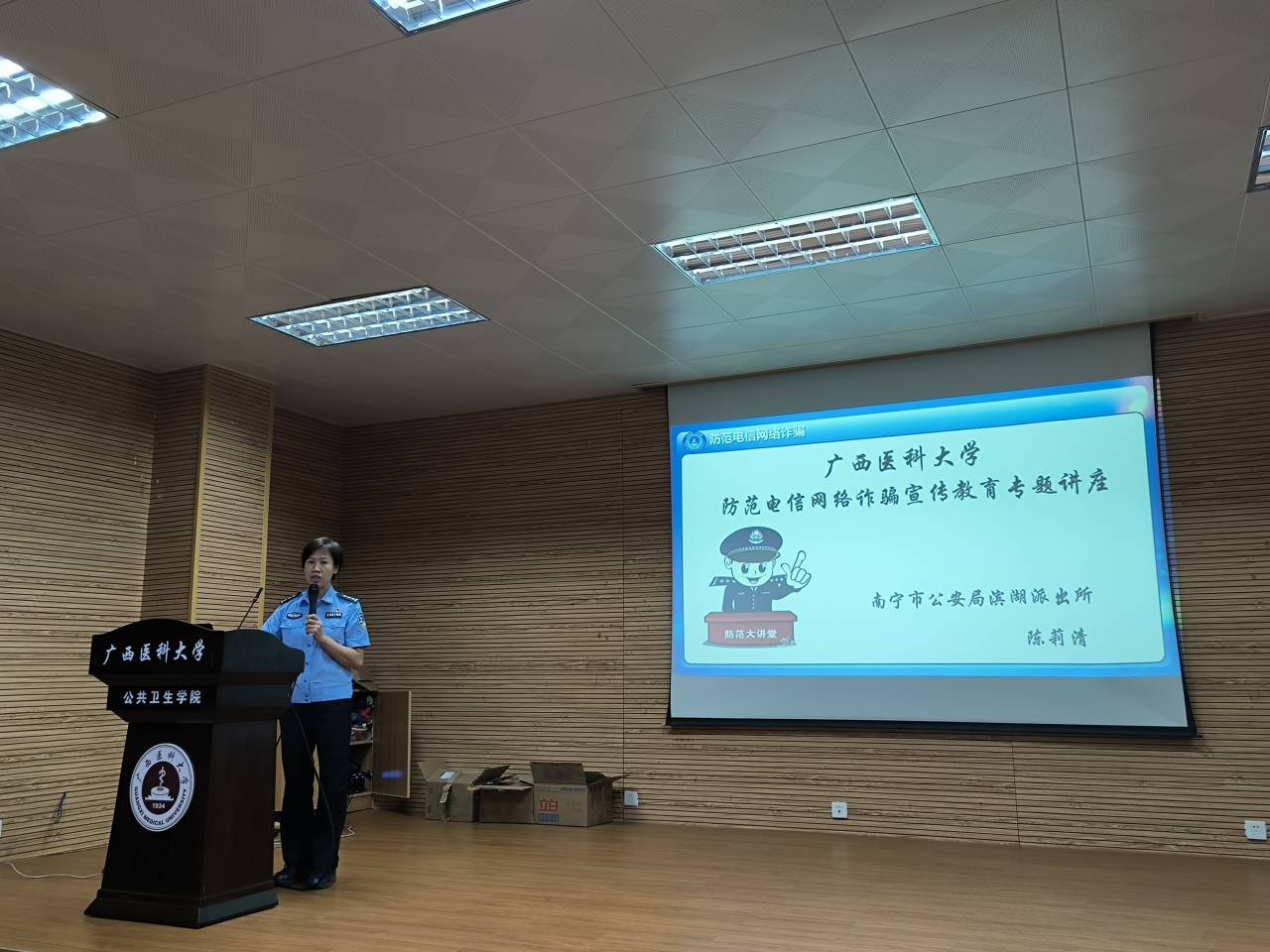 当前位置:学生工作为增强我院研究生反诈意识和安全意识,不断增强法治观念,筑牢校园安全防线,10月23日晚,我院举办了“弘扬守法精神,树立法律威望”为主题的安全教育活动。本次活动邀请南宁市滨湖派出所的陈莉清警官作为活动主讲人,学校政治与保卫科科长农文艺、百家乐论坛 研究生辅导员、研究生全体新生和研究生学生干部参加此次活动。