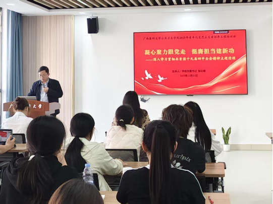 仪式上,陈茜宣读了“青马班”学员名单,详细讲解了百家乐论坛 青马工程的培养体系与实施路径,为后续培养工作的有序开展夯实了基础。随后,邹云锋以“凝心聚力跟党走,挺膺担当建新功”为题讲授团课。他聚焦中国共产主义青年团第十九届中央委员会第四次全体会议决议精神,围绕“把握全会背景与核心精神、明确公卫青年奋斗坐标、投身强国实践书写篇章”三大主线,结合公共卫生专业特色,系统解读全会精神要义,引导学员深刻理解共青团的使命与时代青年的责任。最后,他向全体学员提出三点希望:一要坚定理想信念,勇担时代使命;二要练就过硬本领,夯实专业根基;三要志存高远、追求卓越,努力成长为公共卫生领域的拔尖人才。