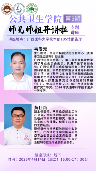 活动现场,韦发双、黄仕灿两位校友结合自身工作经历、职业阅历与人生感悟现身说法,用真实案例分享从业心得,解读公共卫生领域的发展现状与职业前景,为在校生规划职业生涯、树立人生目标提供了实用指导。同时,校友们回望求学时光,鼓励学弟学妹夯实专业基础、坚守公卫初心,在守护人民健康的道路上勇担使命。互动环节中,师生积极提问,校友耐心答疑,现场氛围热烈融洽。