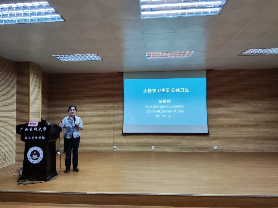 当前位置:要闻动态2023年11月10日-12日,我院在105馆一楼学术报告厅举办了精神卫生专题系列学术讲座。本次讲座特邀到公共卫生领域专家,北京大学第六医院黄悦勤教授、安徽医科大学苏虹教授和中华医学会行为医学分会秘书长高昶教授作学术报告。