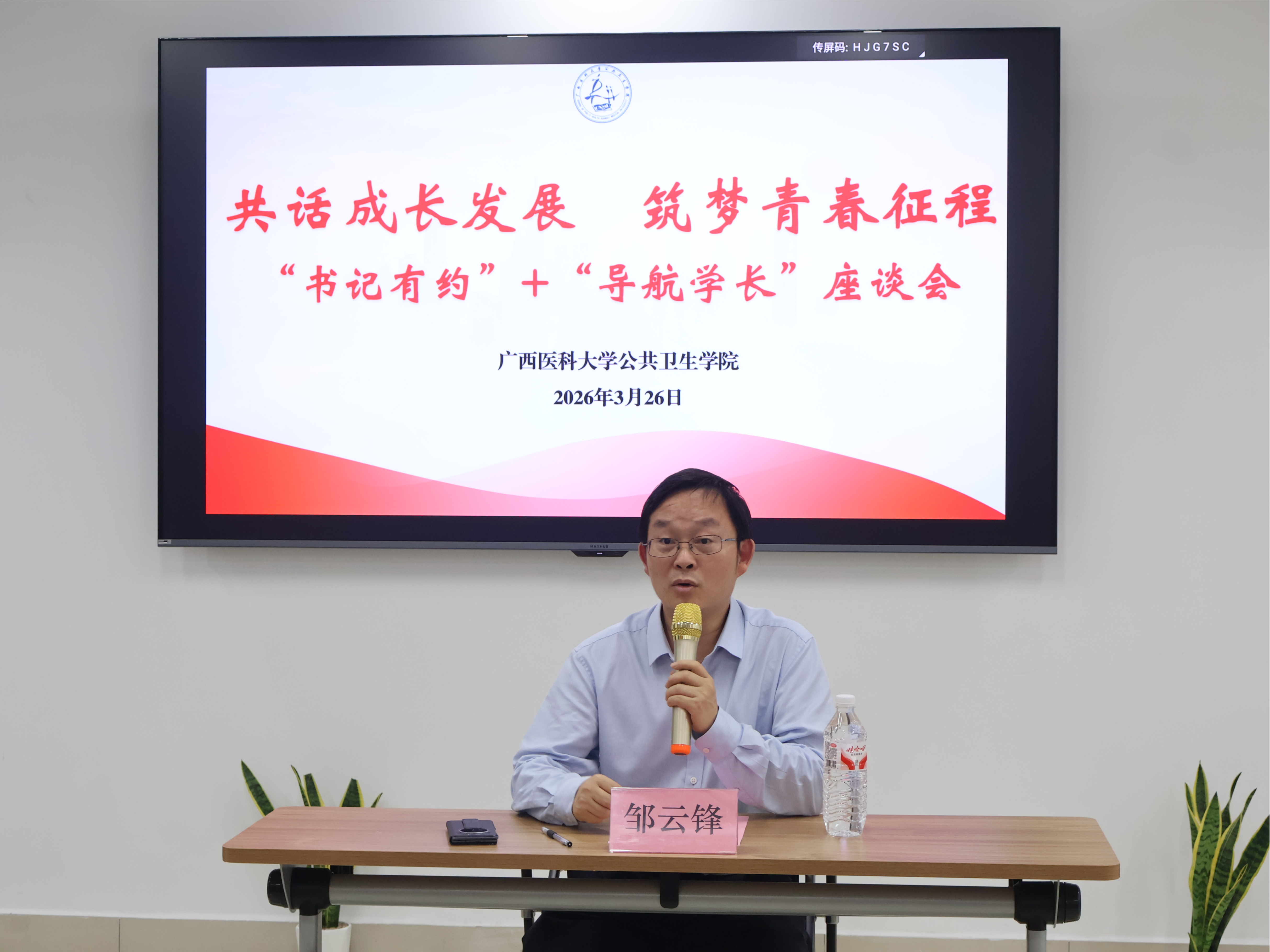 会上,三位优秀导航学长分别结合自身国外交流经历与学习成长历程,围绕海外学习模式、科研实践体验、跨文化交流、个人发展规划等方面进行分享,为低年级学生提供了鲜活的成长范例与实用参考。邹云锋围绕人才培养目标与青年成长需求,提出三点希望:一是心怀梦想、笃行致远,涵养家国情怀,努力成为顶天立地的公卫人;二是认清自我、坚定目标,以开阔视野提升综合能力,以奋斗姿态砥砺成长品格;三是脚踏实地、知行合一,把个人成长融入公共卫生事业,以实干担当服务国家、奉献社会。交流提问环节,同学们就专业学习、职业发展、能力提升等问题踊跃提问,领导与学长们耐心细致解答,现场交流氛围浓厚。